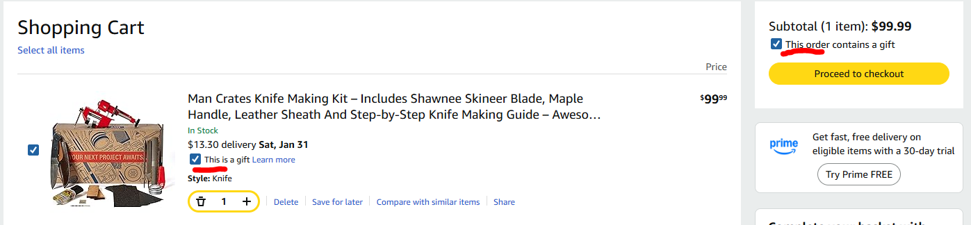On the shopping cart page, you will have to tick the box that says "This is a gift". It is located under the amount and estimated delivery date. Also make sure that the tick box on the subtotal amount above the Proceed to check out button is ticked.